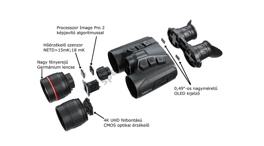 A Hikmicro Habrok Pro HX60L kétszemes keresőtávcső elsődlegesen a professzionális vadászok számára készült, csúcskamera, de emellett járőri megfigyelésre, mentési helyzetekre, csempészet elleni tevékenységekre és eltűnt személyek keresésére is alkalmas. A Pro változat a 4K felbontású digitális éjjellátója mellett már egy extra nagy felbontású 1280×1024 pixeles, kiemelkedő <18mK-es érzékenységű hőérzékelő elemet kapott, így a 60mm-es F1.0 fényértékű optikával brutális részletgazdagságú hőképet ad. A HX60L változatban 850nm-es infravető található. Az új fejlesztésű, speciális kialakítású akkumulátorral 9,5 órás üzemidőt biztosít. Az eszköz IP67-es időjárásállósági szabványnak felel meg, -30°C-tól +55°C-ig használható.A kialakítása strapabíró, mostoha környezeti körülmények között is hatékony.