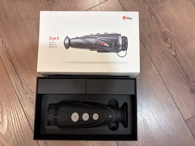 Eladó egy nagyon szép állapotban lévő használt Infiray Eye II. E3max V3.0 hőkamera kereső használt hőkamera kereső. A távcső gyári dobozában, minden tartozéka meg van.