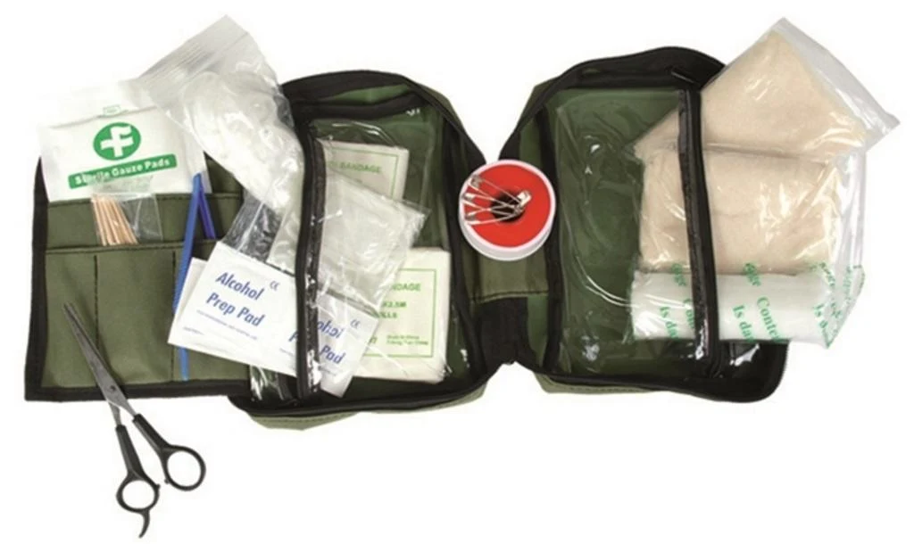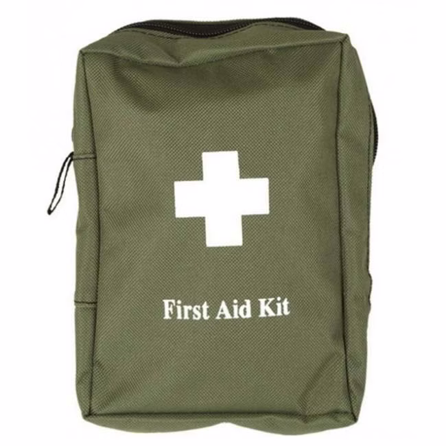 Elsősegély készlet cipzáras hordozó táskában, nylon anyagból. Nem hiányozhat a hátizsákból túrázás, sátrazás vagy halászat közben.