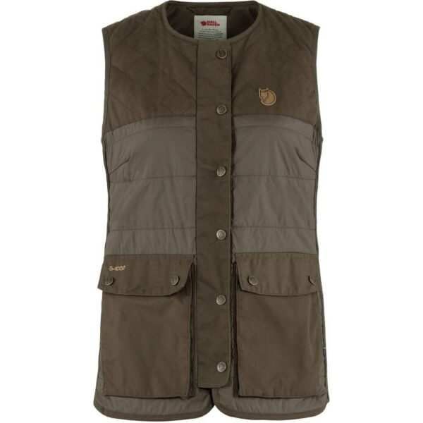 A Fjällräven Forest Wool Női Mellény egy fenntartható gyapjúbetéttel és G-1000 Silent megerősítéssel ellátott strapabíró vadászmellény. Rugalmas oldalpanelei kényelmet és mozgásszabadságot biztosítanak, míg több zsebbel és kétirányú cipzárral rendelkezik a maximális funkcionalitás érdekében.